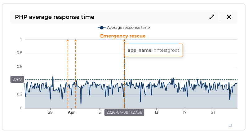 Insights metric charts now show annotations marking notable events on the timeline, making it easier to correlate spikes, drops, and anomalies with what was happening on your Hypernode at the time.
